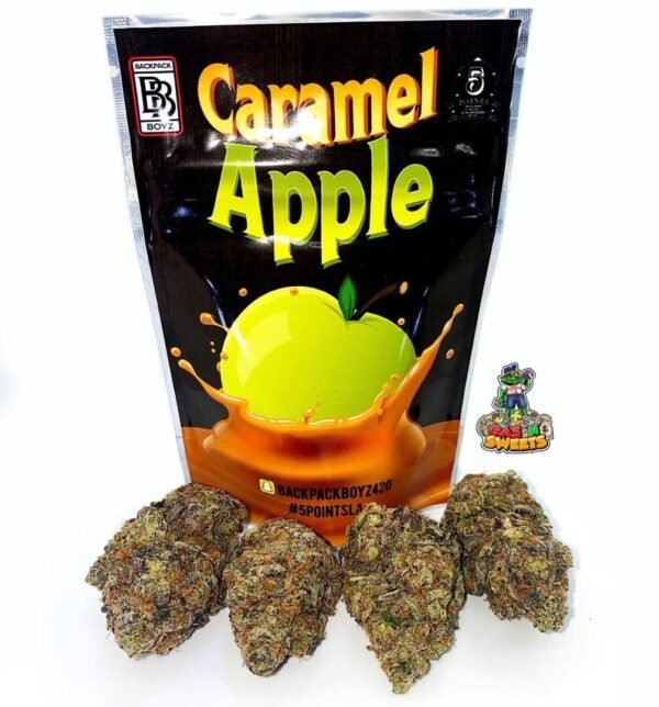 CARAMEL APPLE BACKPACKBOYZ is an indica dominant strain bred by Desert Bloom of Nevada that produces a scent and taste not unlike its name.