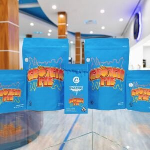 Georgia Pie is slightly indica-dominant and its buds are made of densely-packed and coiled, lime-green leaves. Patches of orange pistils can be found scattered throughout. The coating of fuzzy-trichomes makes over half of the buds surface area appear an amber color. Order georgia pie carts