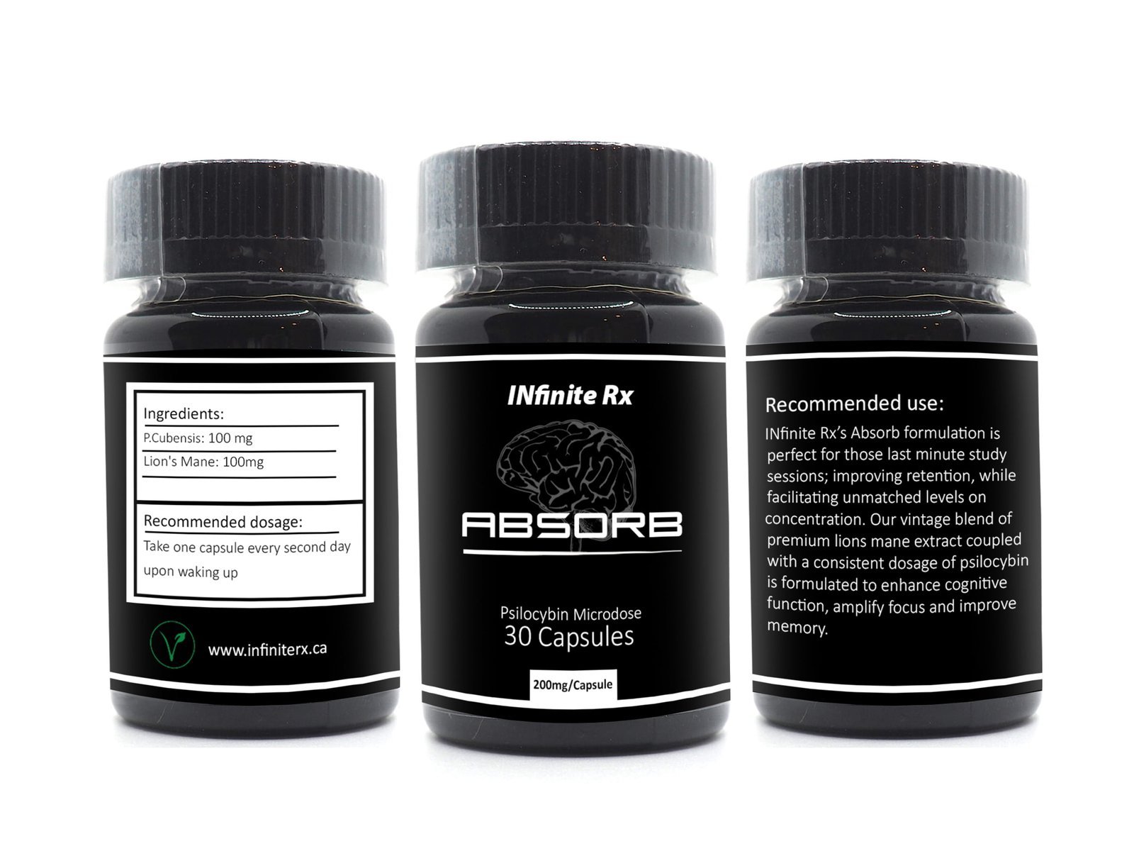 INfinite Rx (Absorb) Microdosing Psilocybin Capsules formulation is perfect for those last minute study sessions; improving retention, while facilitating unmatched levels on concentration. INfinite Rx’s vintage blend of premium lion’s mane extract coupled with a consistent dosage of psilocybin is formulated to enhance cognitive function, amplify focus and improve memory.