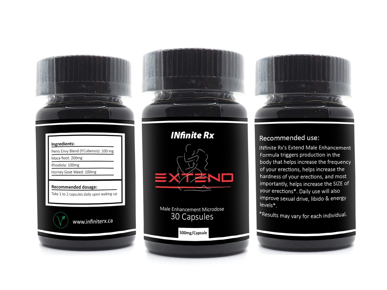 INfinite Rxβs Extend Male Enhancement Formula triggers production in the body that helps increase the frequency of your erections, helps increase the hardness of your erections, and most importantly, helps increase the SIZE of your erections*. Daily use will also improve sexual drive, libido & energy levels*. *Results may vary for each individual.
